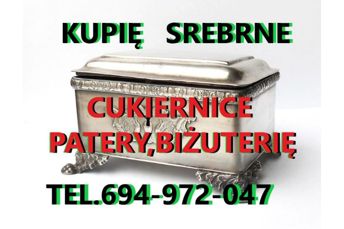 zegarki, srebrną biżuterię, srebrne cukiernice, sztućce, monety srebrne i